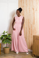 Introducing our limited edition Pink Blossom jumpsuit, part of our capsule collection. This chic jumpsuit, in a soft pink color, features a gathered waist for a flattering silhouette and practical pockets for added convenience. Versatile and comfortable, it can be paired with flats for a casual look or heels for a more sophisticated style. Don’t miss out on this stylish and comfortable piece!