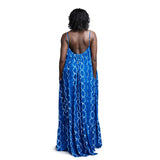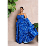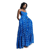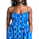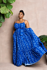Blue is such a royal color! Every woman should have something blue in her wardrobe! But if it’s the Indigo African Print summer dress, it’s even better! The blue chiffon dress featuring spaghetti straps and pockets compliments your curves and body type, whatever that might be. The dress is created for comfort, but also to bring out your personality and style. The neckline is designed to bring out the beauty of your breasts and create contrast with a much slimmer waist emphasized by a matching belt. Elevate your summer attire with the Indigo African Print dress and you’ll love the blue on you!