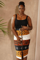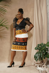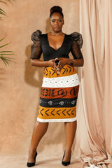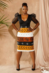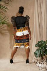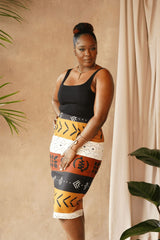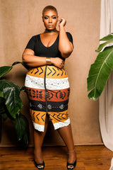 Are you ready to be in the spotlight? Because this is what is going to happen when you wear the Lona Stretchy African Print Pencil Skirt. The color combination brings back valuable inheritance from our ancestors and surprises the eye in such a pleasant way. The pencil skirt is a great choice for work and time out, depending on your personal style. Because it is stretchy and knee-length it looks lovely on different body types, so you can rest assured – you will totally rock this outfit! The zipper can be worn in the back or the front, depending on your preference and the outfit.