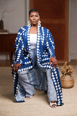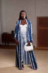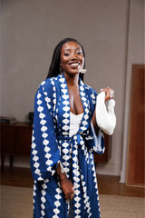 The Indigo Kimono is made from high-quality chiffon and has a distinctive all-over pattern that is both flattering and versatile. The wrap-silhouette style with long, wide sleeves makes it perfect for a comfortable, but feminine all-day wear. The mid-weight material and the loose fit design are ideal for women who appreciate effortless style, but aim for comfort and pleasurable wear too. The Indigo Kimono Dress comes with a matching sash belt and features an original design created by Sirani’s Fashion.