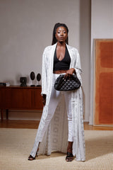 Investing in a chic and timeless piece is always a good idea, and this is what the White Mudcloth Print Kimono is – timeless elegance and sophistication with a dash of sassy. The Mudcloth print kimono was created with attention to detail for a look of effortless femininity. The white color chiffon long kimono comes with a matching sash belt to accentuate your waist whenever you feel the desire to create an hourglass figure. Otherwise just wear it loose and enjoy the pockets that are always and wonderful adage to any outfit.