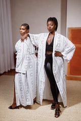 White Mudcloth Print Kimono Dress