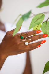 White Nisha Ring is designed to become one of your signature pieces of jewelry. Add instant style recognition to your selection of clothing with the White Nisha Ring made from gold-toned brass. The design was chosen for effortless accessorizing. This means that it goes well with pretty much all the statement items of your wardrobe. It was never easier to create an instant style success story than it is when you choose to wear the White Nisha Ring.